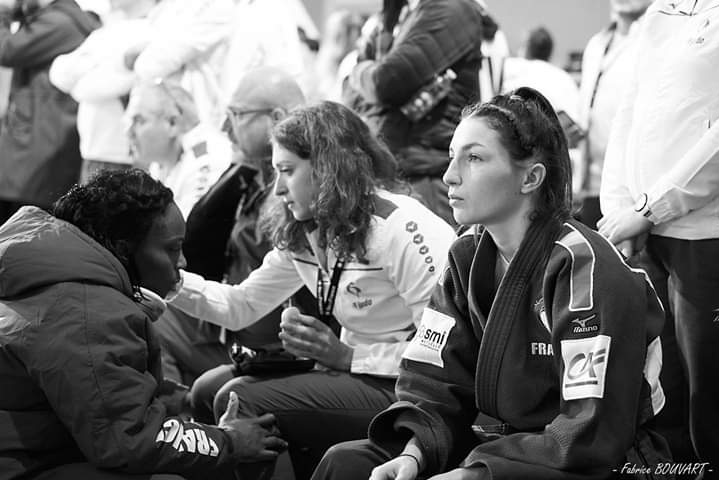 Laurie-Anne Marquet, ici avec Clarisse Agbegnenou, est aux petits soins des judokas tricolores, même le jour des compétitions. Photos Laurie-Anne Marquet